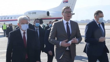 Na sarajevskom aerodromu Butmir, predsednika Srbije dočekali su predsedavajući Predsedništva BiH Milorad Dodik i bošnjački član Predsedništva Šefik Džaferović.